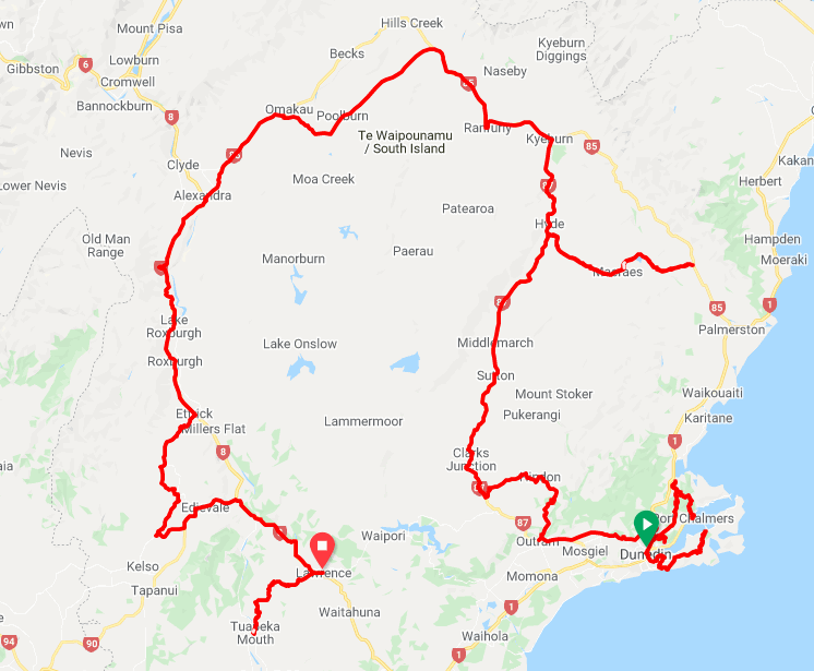 Next is Port Chalmers, and then to the Central Otago Region to complete a lazy loop around the Lammermoor Range. The course finishes in the town of Lawrence.