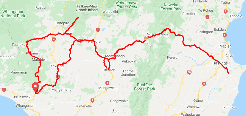 This course starts and finishes at the entrance to the Whanganui National Park, just outside the city of Whanganui. It will take you to Hastings across the Ruahine and Kaweka ranges, on the Taihape Napier road. The furthest point of the course is at the top of Te Mata Peak, “The Sleeping Giant”.